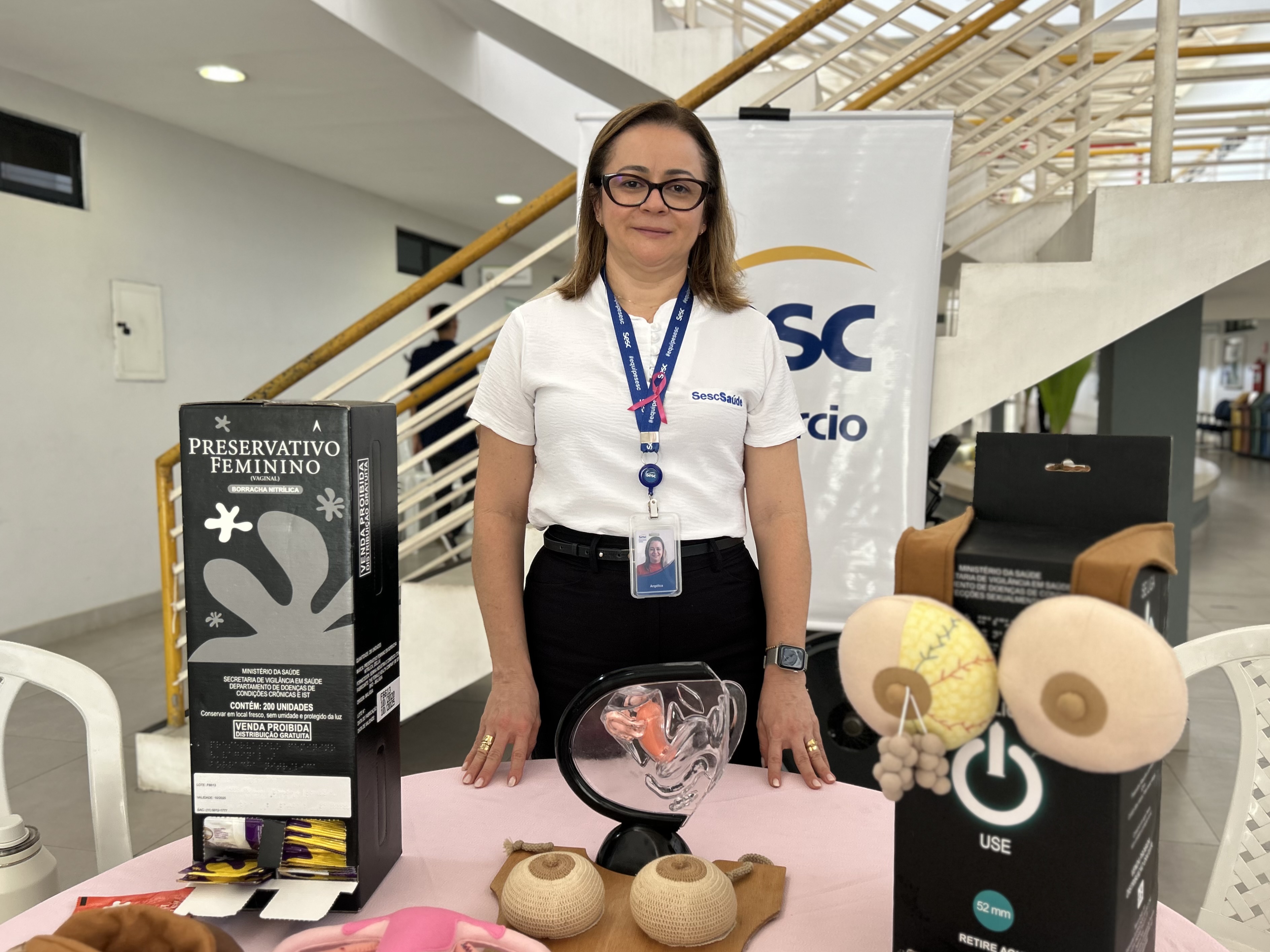A enfermeira do Sesc, Angélica Linhares, explica que a iniciativa incentiva a realização de exames preventivos e reforça o compromisso com a saúde da mulher.