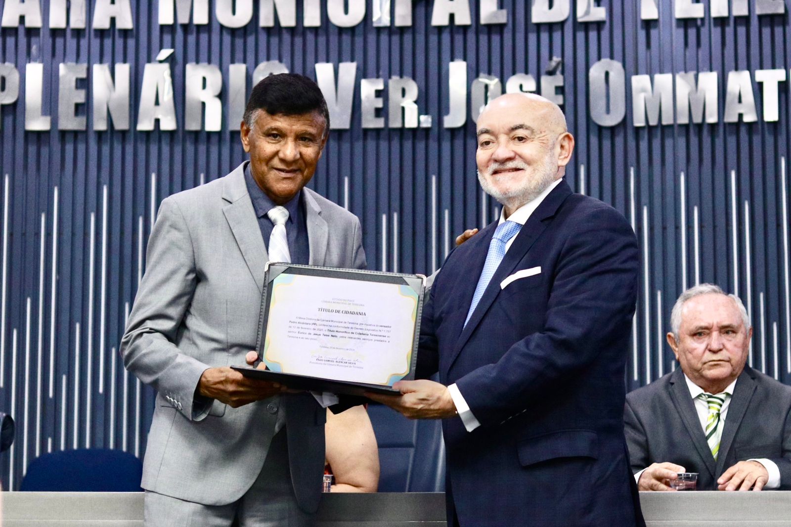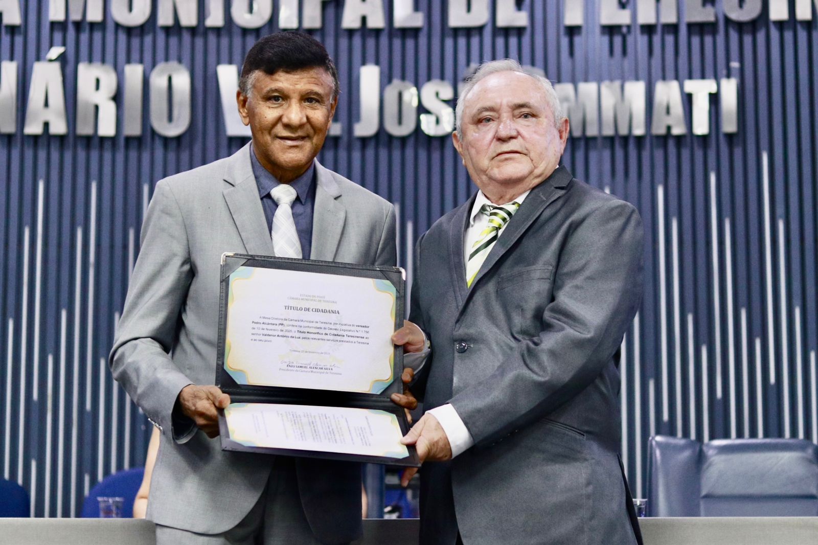 A Câmara Municipal de Teresina realizou, na sexta-feira (27), em sessão solene, a concessão do Título de Cidadão Teresinense ao coordenador do Departamento Nacional de Obras Contra as Secas (DNOCS) no Piauí, Francisco de Assis Leal Rocha; ao bancário Valdenor Antônio da Luz; e ao advogado Eurico de Jesus Teles Neto, em reconhecimento aos relevantes serviços prestados ao desenvolvimento educacional, social e econômico da capital.