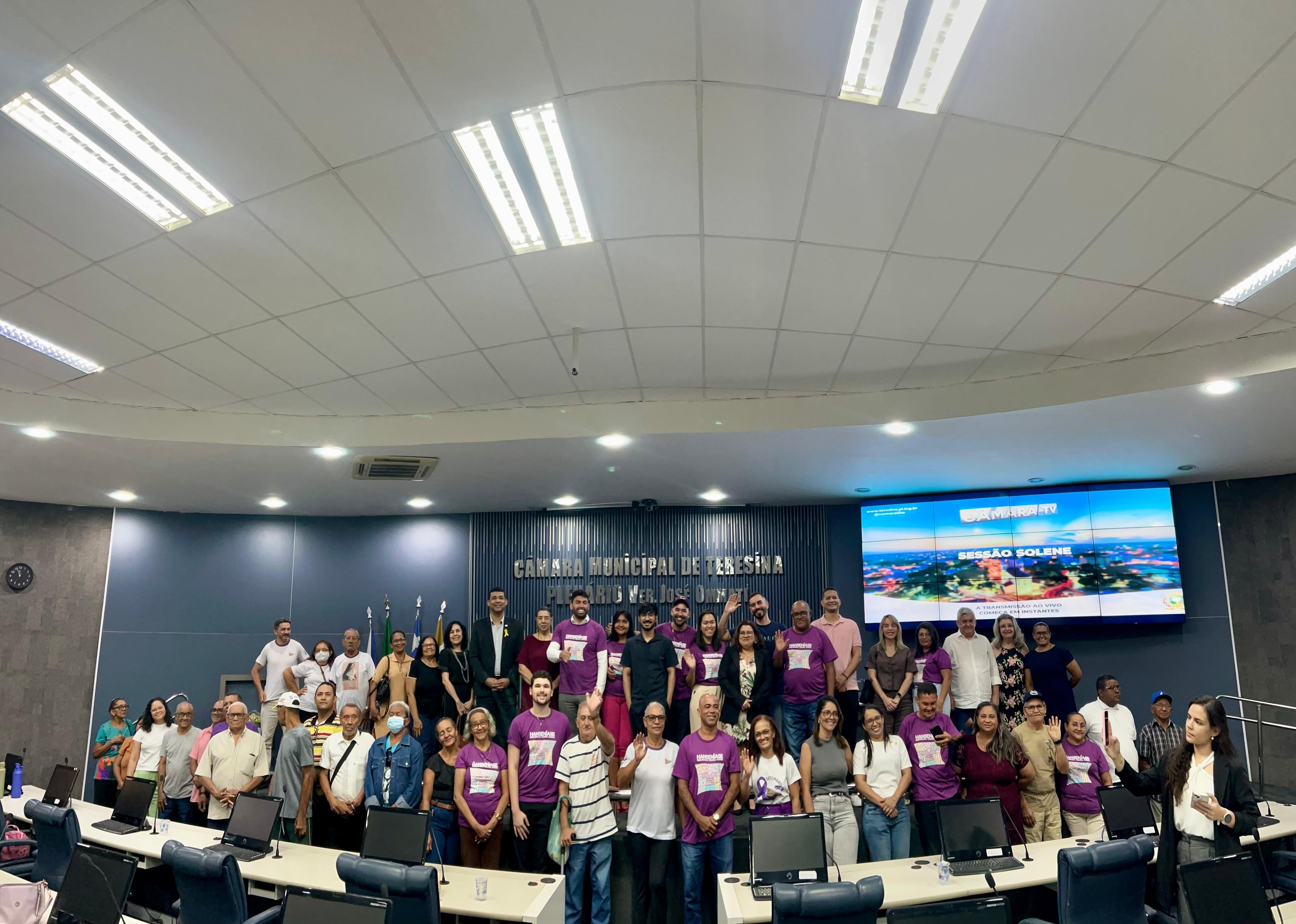 Nesta segunda-feira (29), a Câmara Municipal de Teresina prestou homenagem ao Centro Maria Imaculada, instituição de referência no tratamento de pessoas com hanseníase, mantida pela Ação Social Arquidiocesana (ASA). A sessão solene, de iniciativa do vereador Eduardo Draga Alana, buscou fortalecer o debate público, valorizar a vida e atuar diretamente contra a desinformação e o preconceito, além de ser alusiva à campanha Setembro Roxo, dedicada à conscientização sobre a doença.