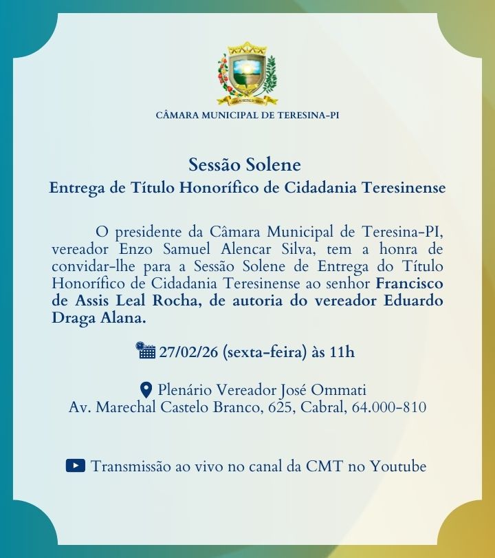 2ª Sessão Solene para entregas coletivas de Título Honorífico de Cidadania Teresinense (2026)