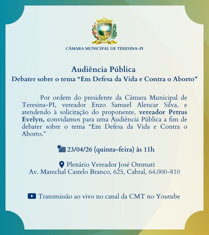 Audiência Pública para debater sobre o tema “Em Defesa da Vida e Contra o Aborto”